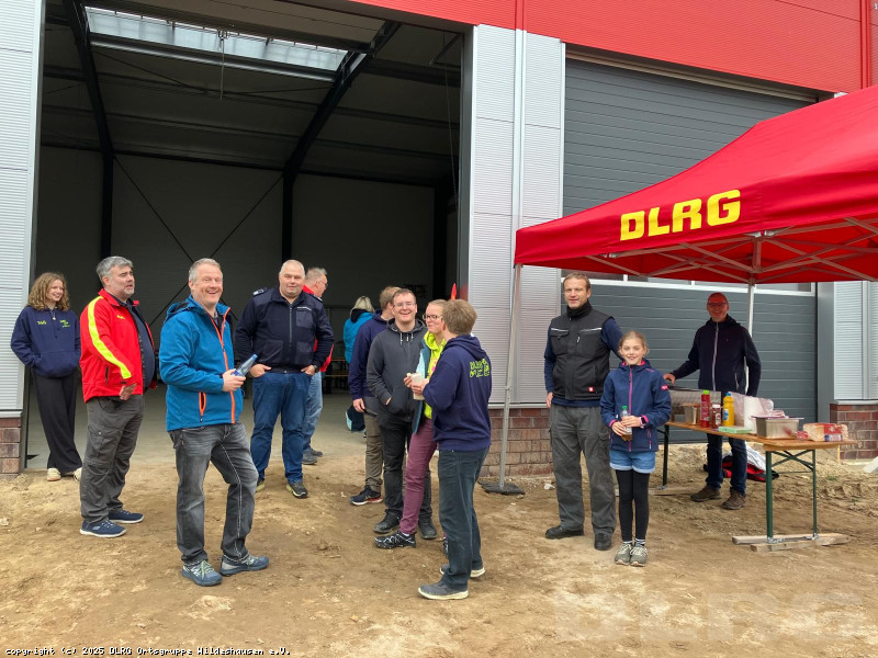 Der Rohbau der Stahlhalle steht, was mit den Mitgliedern bei einer Art „Richtfest“ mit Bratwurst und Getränken gefeiert wurde.